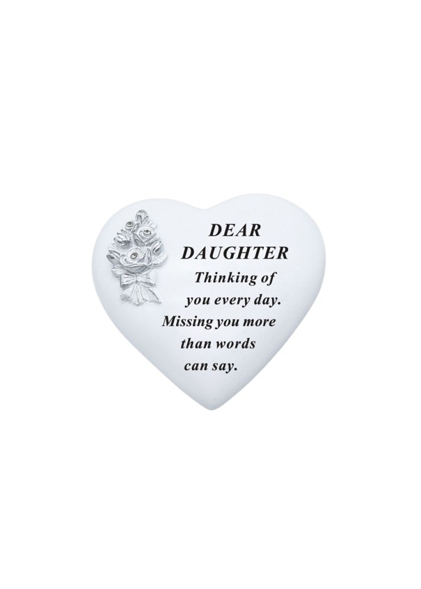 Daughter White Heart Stone With Silver Three Diamante Rose Bouquet