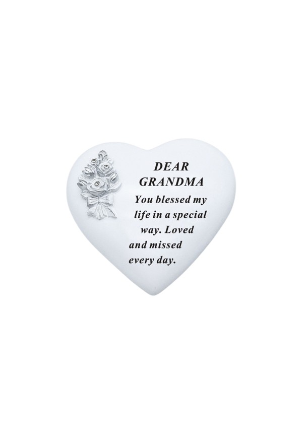 Grandma White Heart Stone With Silver Three Diamante Rose Bouquet