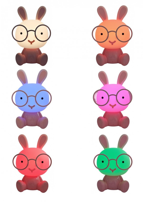 Luminous speaker colour changing bunny night light comes with a USB cable, has a built in rechargable battery, charging time is 3.5 hours.