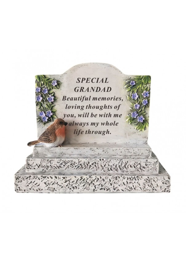 Grandad Memorial Plaque With Robin And Lilac Floral Design
